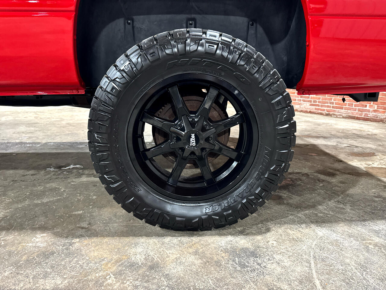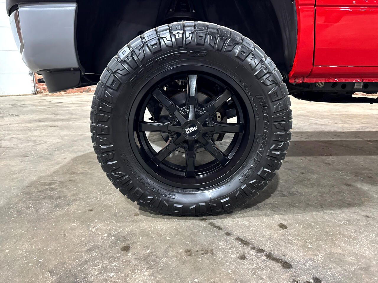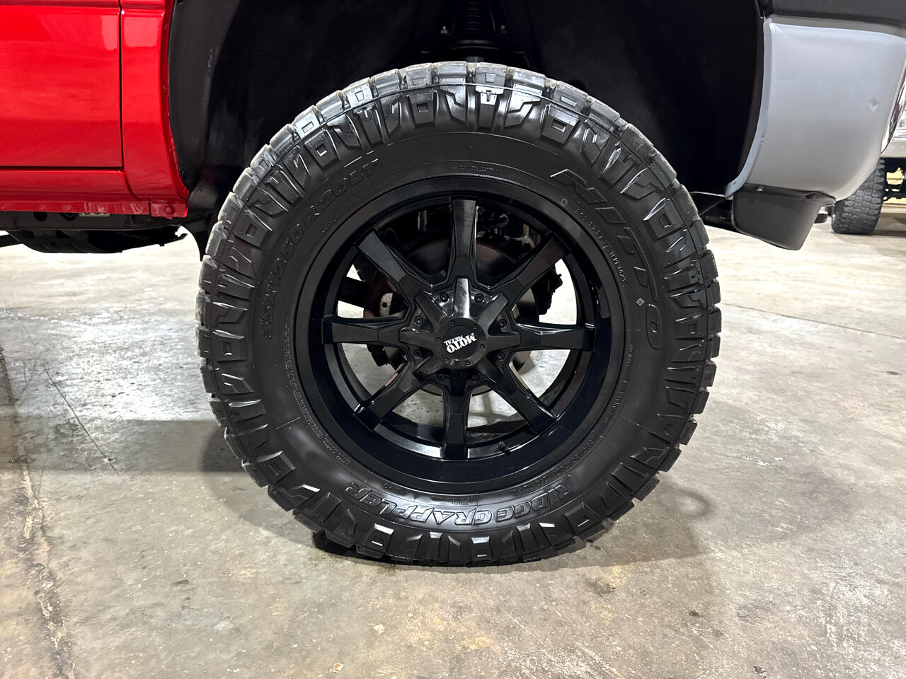 It rides high on a 4-inch suspension lift, sitting on aggressive 35-inch tires wrapped around 20-inch Moto Metal black wheels that give it a bold, commanding stance.